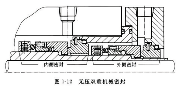 有壓雙端面機械密封(即Face-to-Face雙端面機械密封)有兩對摩擦副,結構復雜,需要外供封液系統(tǒng),密封腔內(nèi)通入比介質(zhì)壓力高(0.5--1.5)x105Pa 的隔離液,起封堵、潤滑等作用。隔離液對內(nèi)側密封起到潤滑作用。