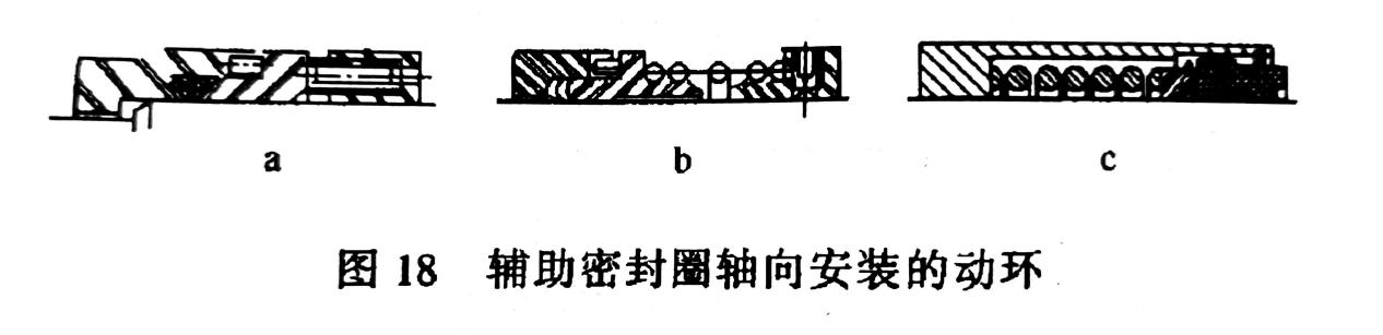 靠輔助密封圈軸向裝置的動環(huán)(圖18),靠彈簧力壓緊密封圈來實現(xiàn)密封。彈簧力可視為不變化,密封可靠、使用壽命長、安裝較為便利,從而得到廣泛應(yīng)用。