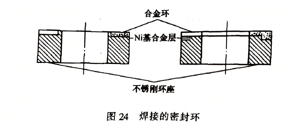 為改善熱裝式密封環(huán)松脫的問題,呈現(xiàn)了焊接的密封環(huán)(圖24)。所用的硬質合金是以Cr3C2為硬質相、Ni為粘結相的燒結合金材料。耐腐蝕優(yōu)于YG6等硬質合金,高溫下具有優(yōu)異的抗氧化性能,在1000℃空氣中加熱2小時無任何變化??墒菍嵝阅茌^差,僅為YG6的1/3;線膨脹系數(shù)大,比YG6大1倍多,為10.2x10-6/℃(10~500℃時)。這兩點導致了耐熱沖擊性能不如YG6好。正因為線膨脹系數(shù)較大,和馬氏體不銹鋼接近(10~500℃時為11x10-6/℃),為和環(huán)座焊接提供了有利條件。焊接時需在環(huán)和座之間鋪放一層鎳基粉末,置于真空電阻爐中,經(jīng)1100℃高溫熔焊,然后進行回火處理,以消除焊接應力。由于是焊接的密封環(huán),硬質合金環(huán)的厚度可以比YG6薄,毛坯的厚度也只要3~3.5mm。又因密度小,是YG6的一半(7~7.5g/cm3),因此,可節(jié)約貴重金屬,價格較低。這種合金的牌號為CN15,其間Cr3C2 85%、Ni 15%,由北京硬質合金廠研制成功。