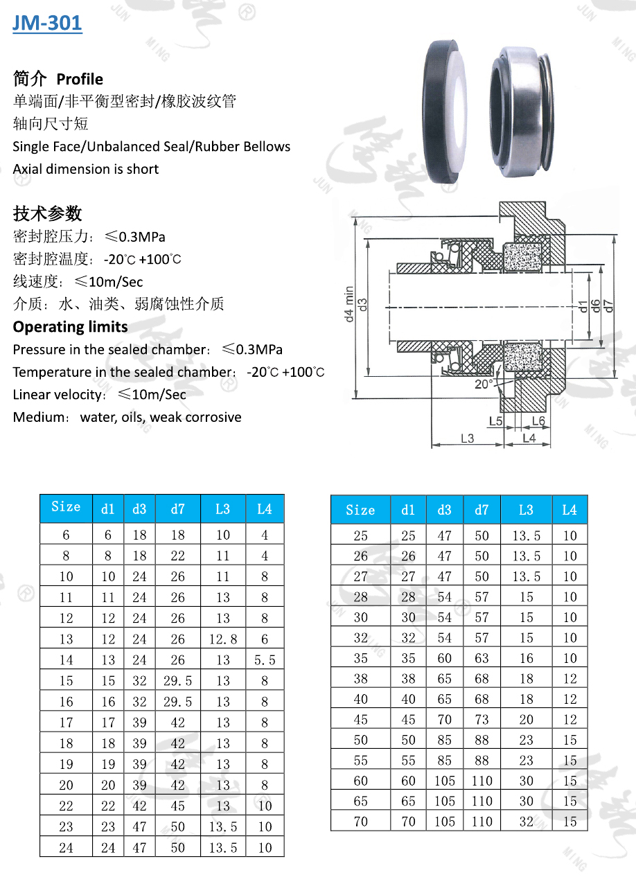 單端面/非平衡型密封/橡膠波紋管,軸向尺寸短。